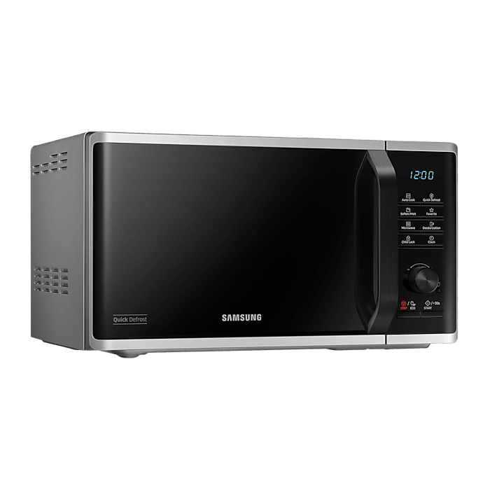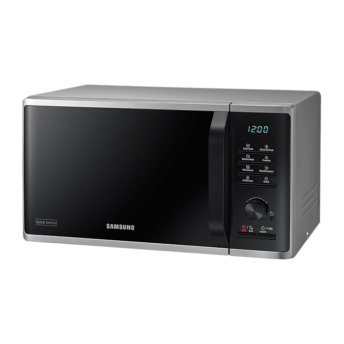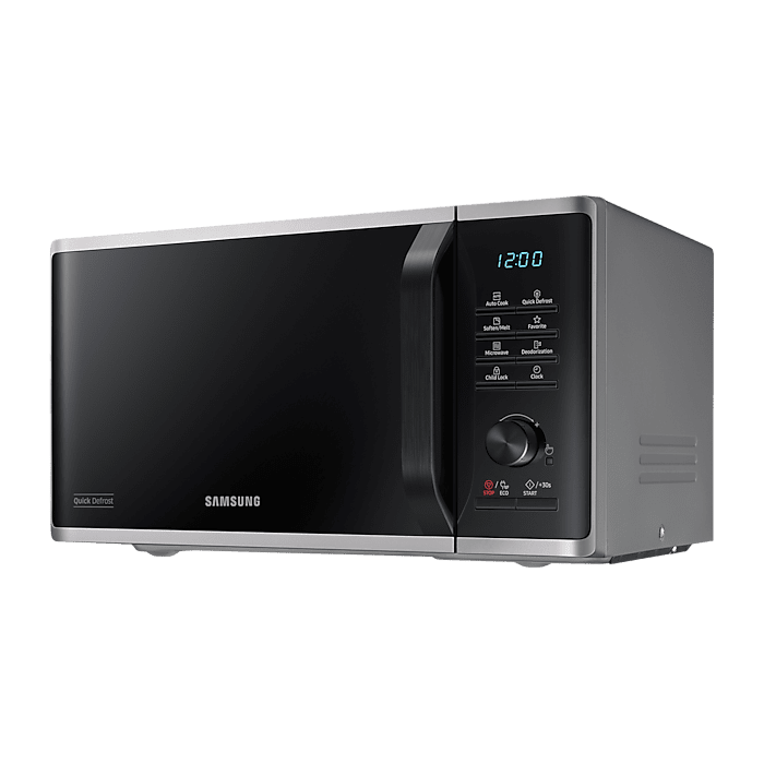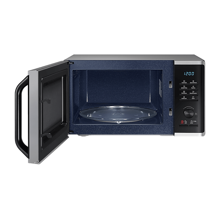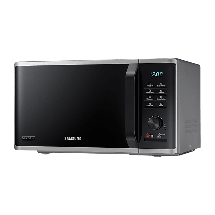 The Samsung MS23K3515AS is built with usability at its core. Its digital control panel combines simplicity with smart functionality, offering one-touch convenience and clearly labelled controls. Whether you’re cooking, reheating, or defrosting, the controls are easy to navigate, even for users who are new to microwaves.